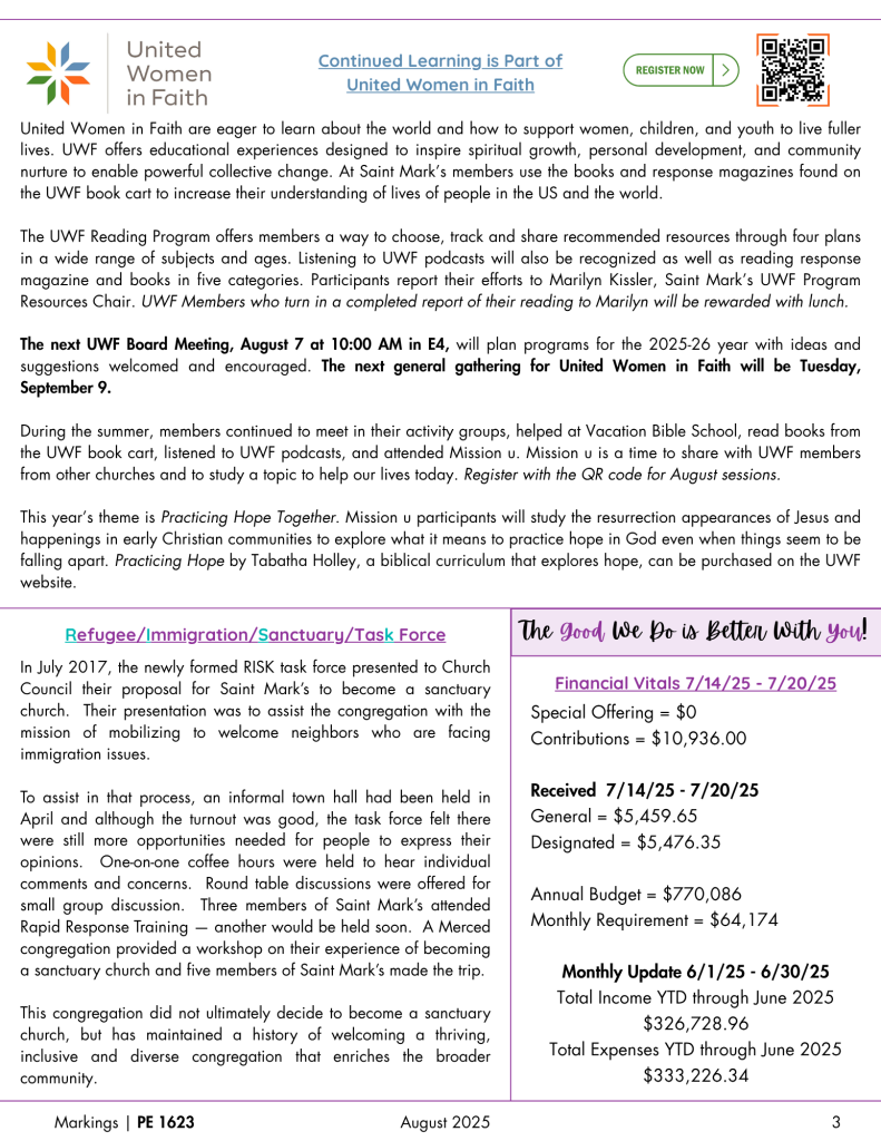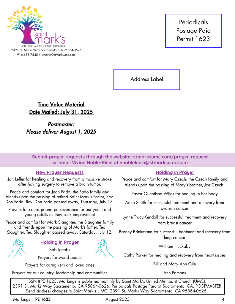 Please keep us in your prayers as we seek the right person to join the Saint Mark’s team and continue supporting our many ministries.