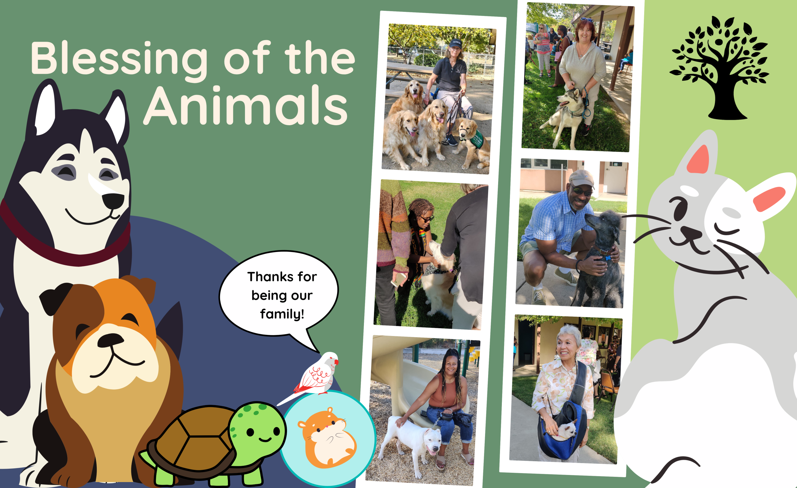 All are welcome to bring their furry, scaly, feathery, and faithful family members for the Blessing of the Animals.