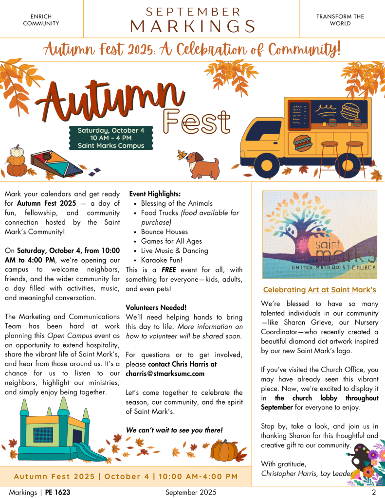 We’re working on getting registered for a 10×10 booth with the help of Doug Treadwell, and we’ll need volunteers—yes, that means YOU! Whether you can help staff the booth, answer questions about Saint Marks, or simply show up to march with us, your presence matters.