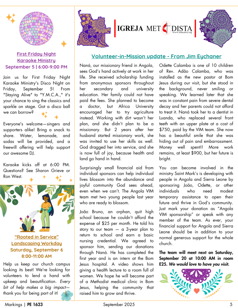 Our beloved All-Church Yard Sale is back—hosted by the Angola Mission Team! Come shop, volunteer, or donate gently used items to support our next mission trip and the church budget.