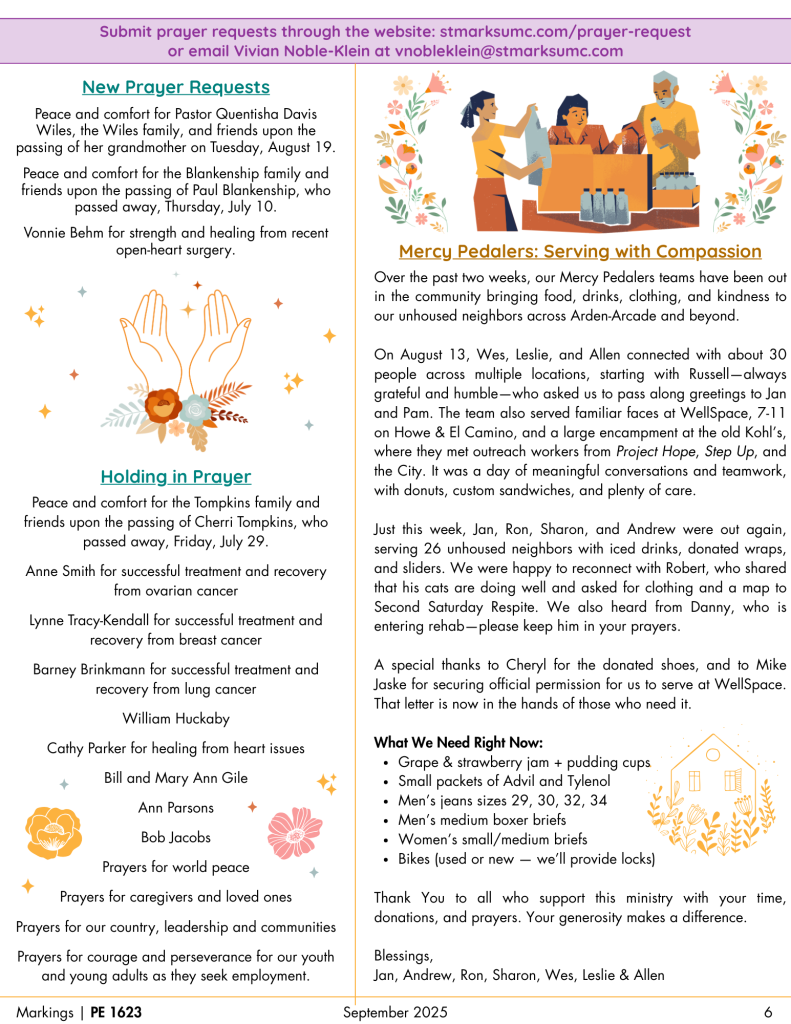 As I focus on my recovery, I kindly ask for your help in keeping the campus running smoothly in my absence. Whether it’s assisting with campus upkeep, volunteering for events, or helping with walkthroughs, your support will mean the world to me. Saint Marks has always been a place of love, and I know that with your care, it will continue to thrive until my return.